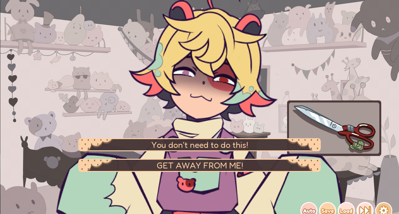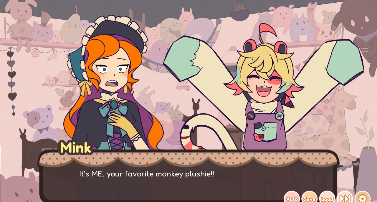 I am super excited about the way I was first drawn to dialogue options that cared about the plushies, which led to special CGs and the normal ending, and also the clue to unlocking the true ending.